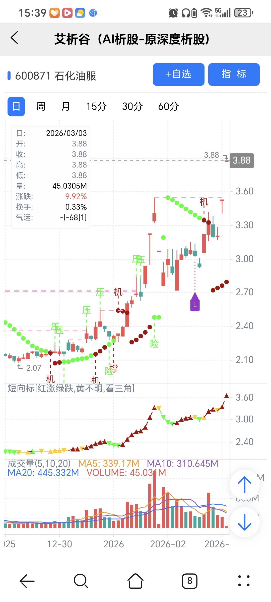 风险:股价下穿艾短波或红变绿、绿字。