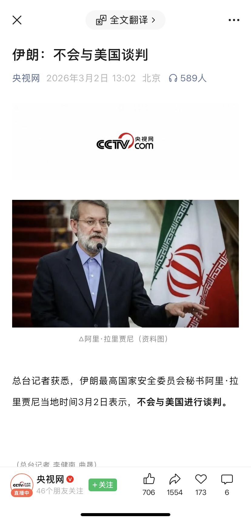 $石化油服(SH600871)$ 伊朗总统不接受谈判