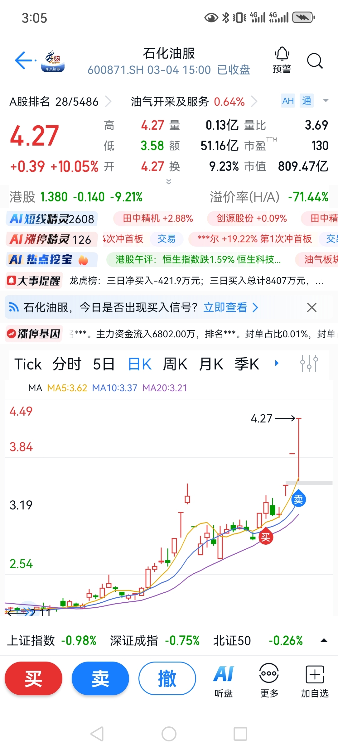 昨天笑嘻嘻,今天哭啼啼,昨天的燃气和航运被埋了,开盘前看A50跌成那样,知道今天要难受了,盘前选出来的农发种业和中水渔业只敢买了一个,没买的反而涨停