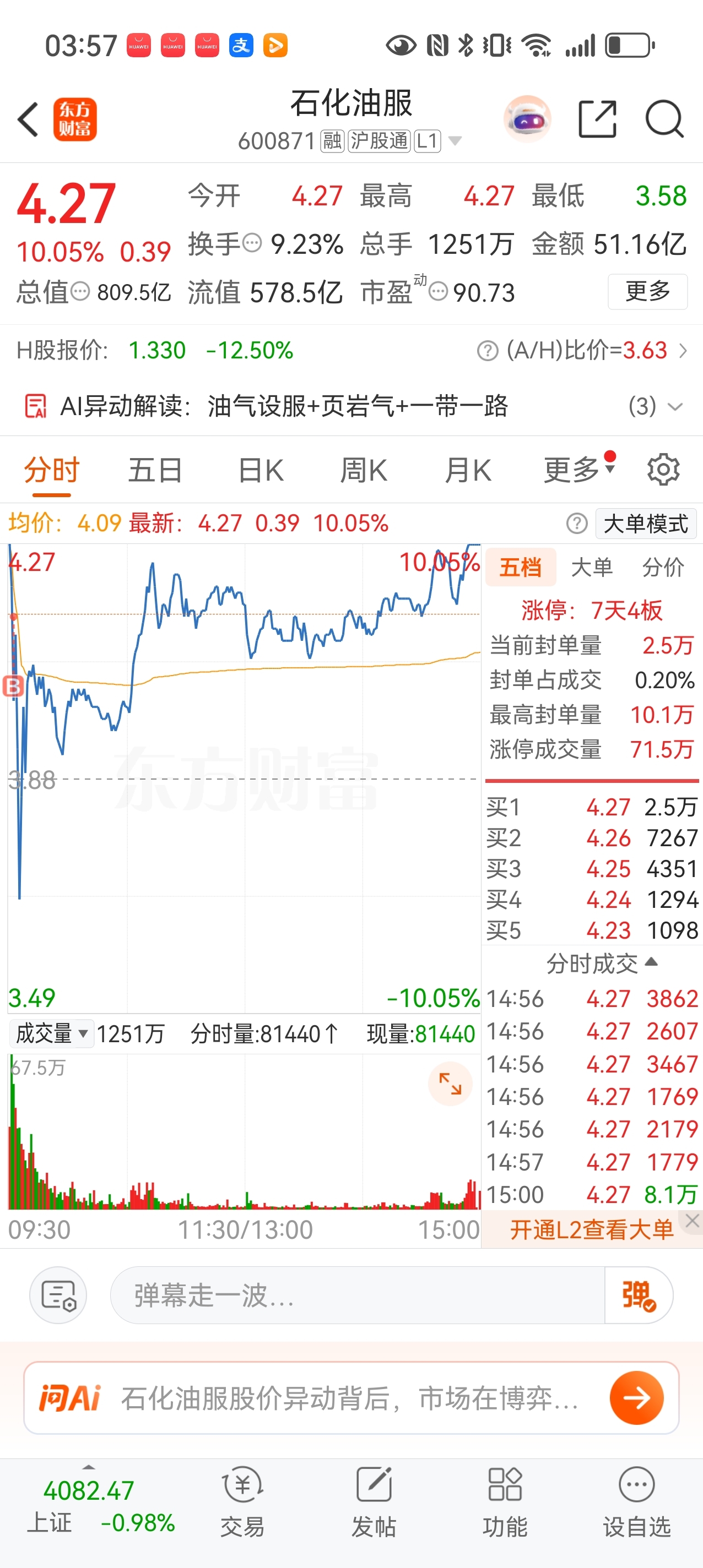 $石化油服(SH600871)$ #收盘点评# #强势机会#