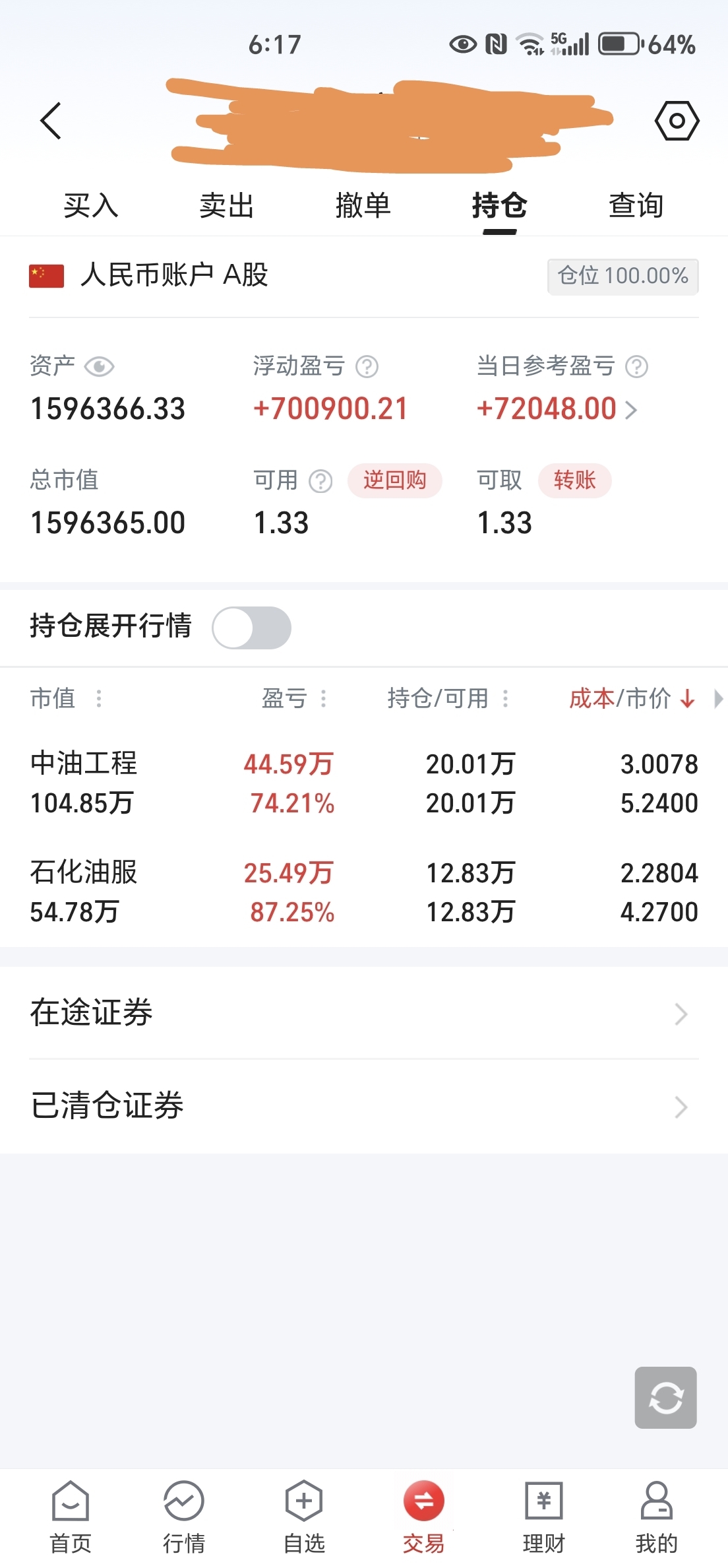 $石化油服(SH600871)$ 舅舅我左手石化右手中油安心持股待涨……