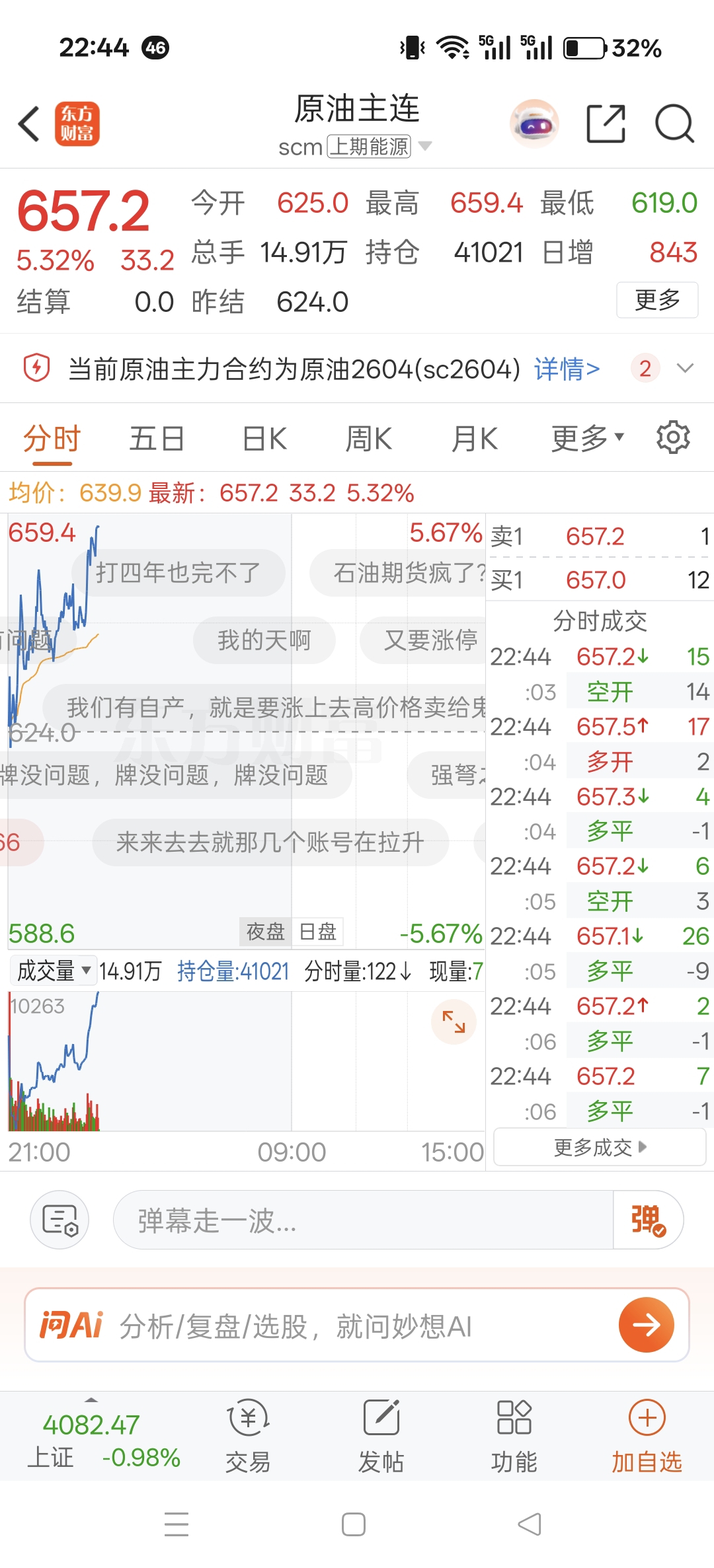 $石化油服(SH600871)$ 上海原油主连已经杀疯掉了