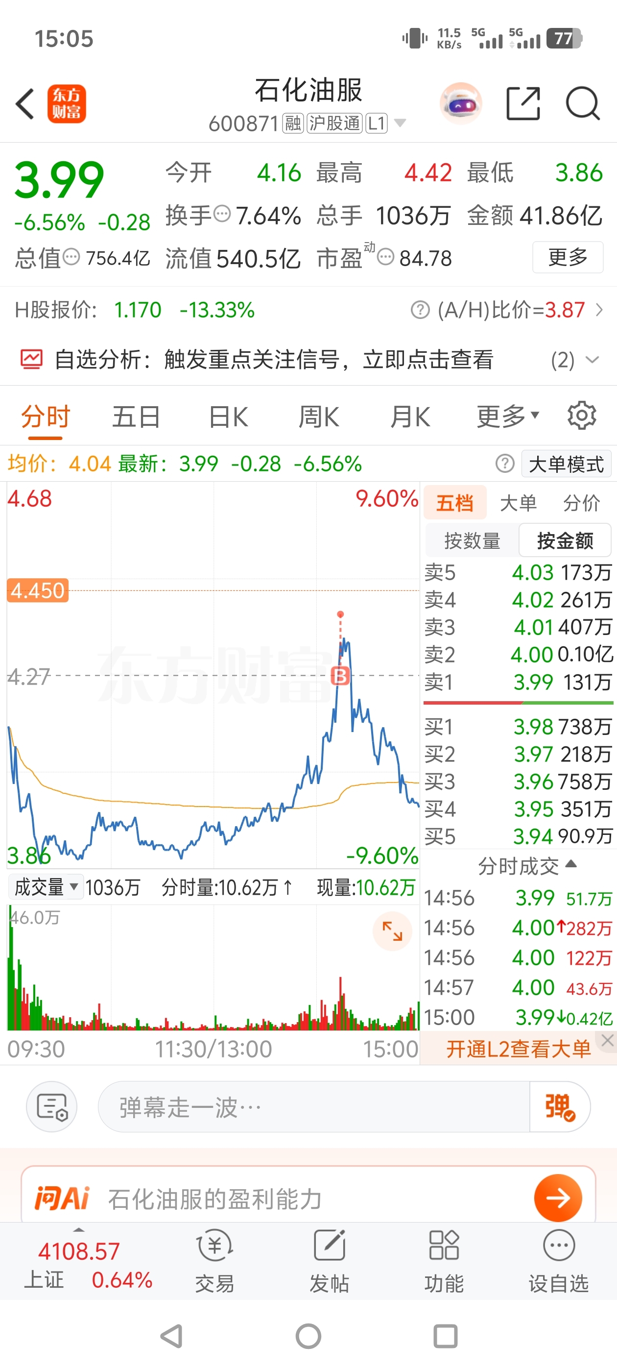 $石化油服(SH600871)$ 我感觉我是高手,哈哈哈