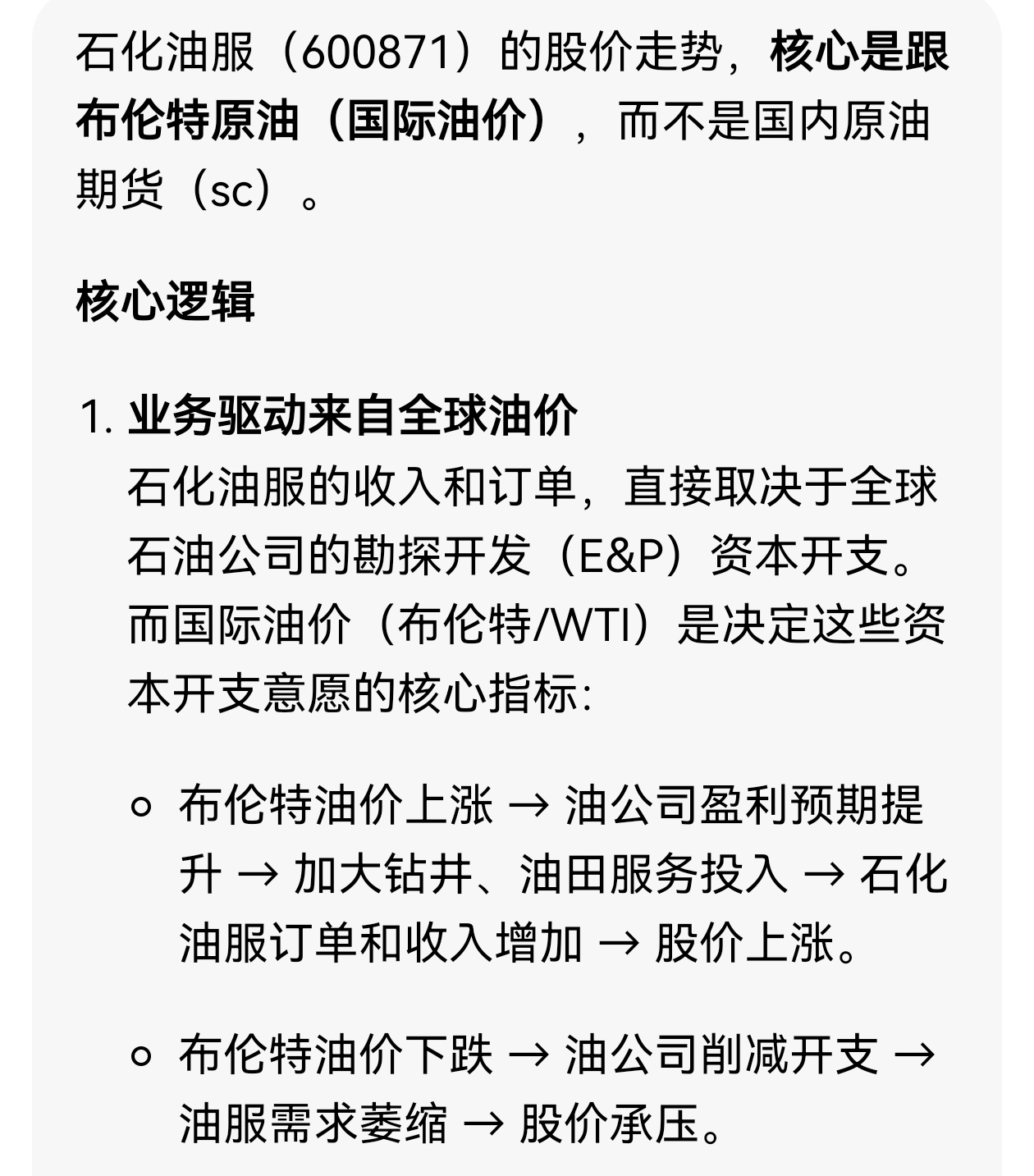 $石化油服(SH600871)$ 明天具体的趋势可以多关注一下布伦特原油,这个跟石化油服关系很大。