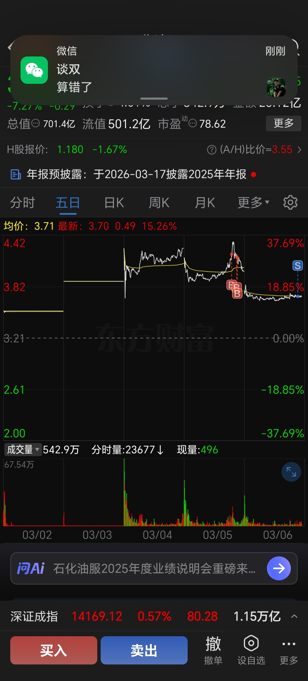 $石化油服(SH600871)$ 买错就要认,该割就割,拜拜啦各位,留下发财