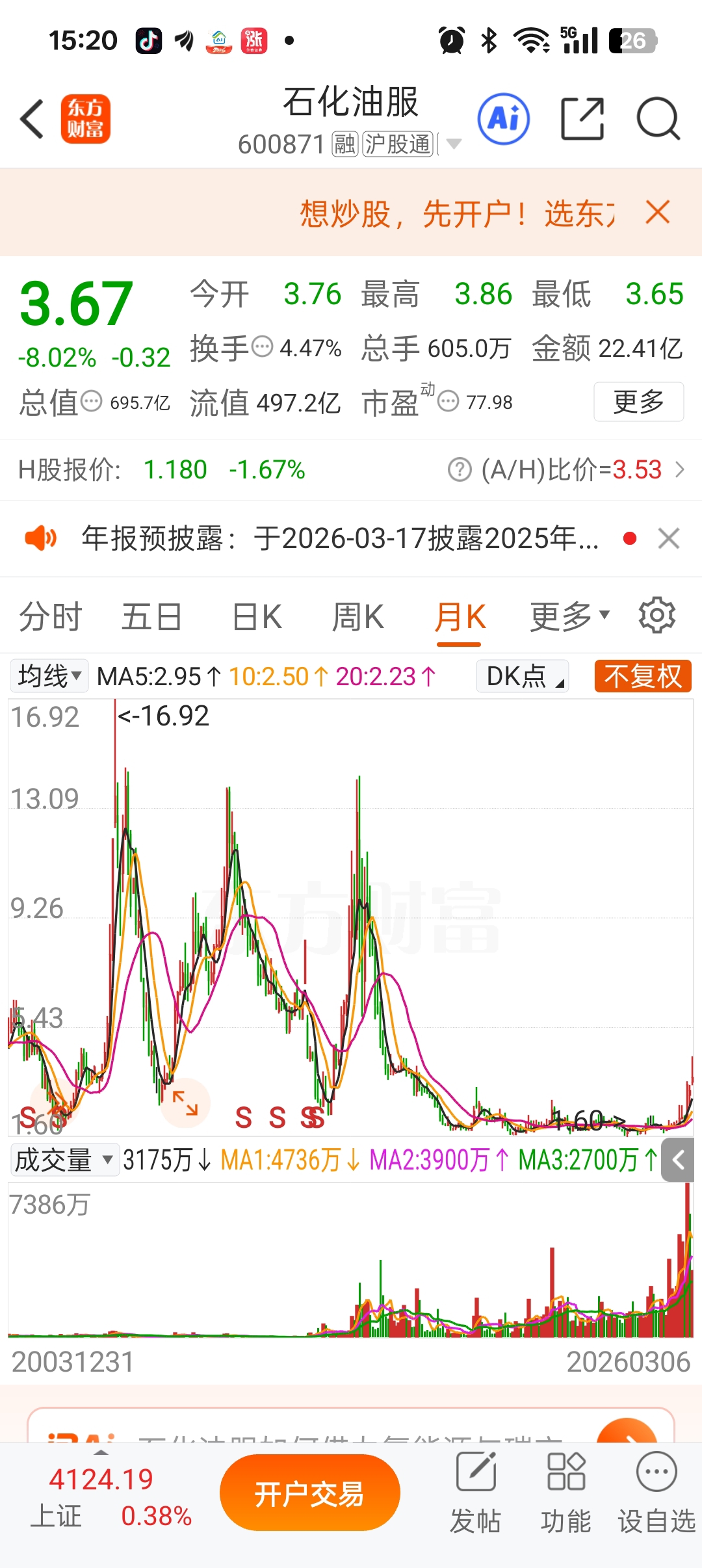 $石化油服(SH600871)$ 此股历史上看上下波幅太大,涨得快跌得也快。看中东这一闹,咱收场了。