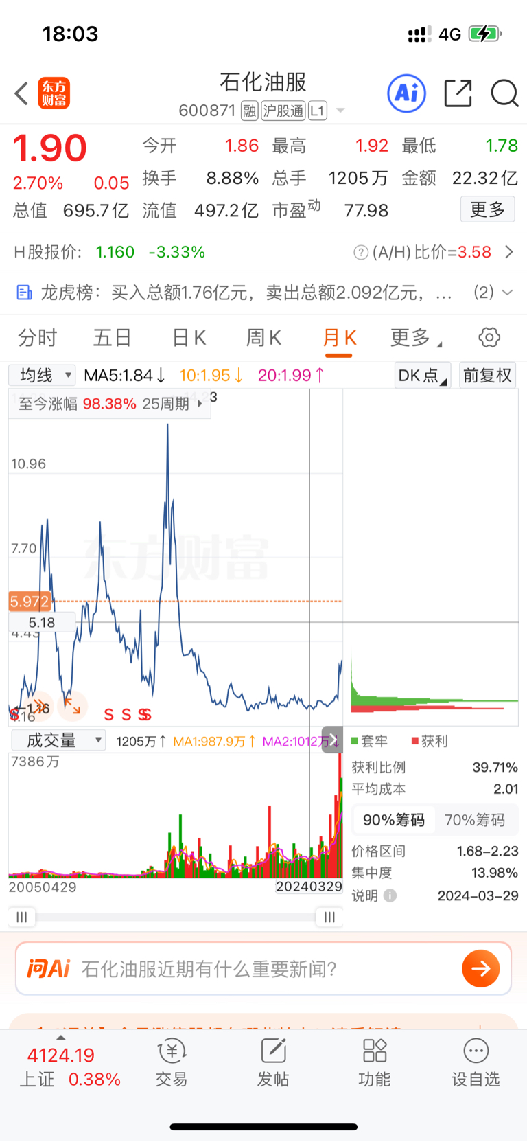 $石化油服(SH600871)$ 近6块的成本这么多年你给我解放不