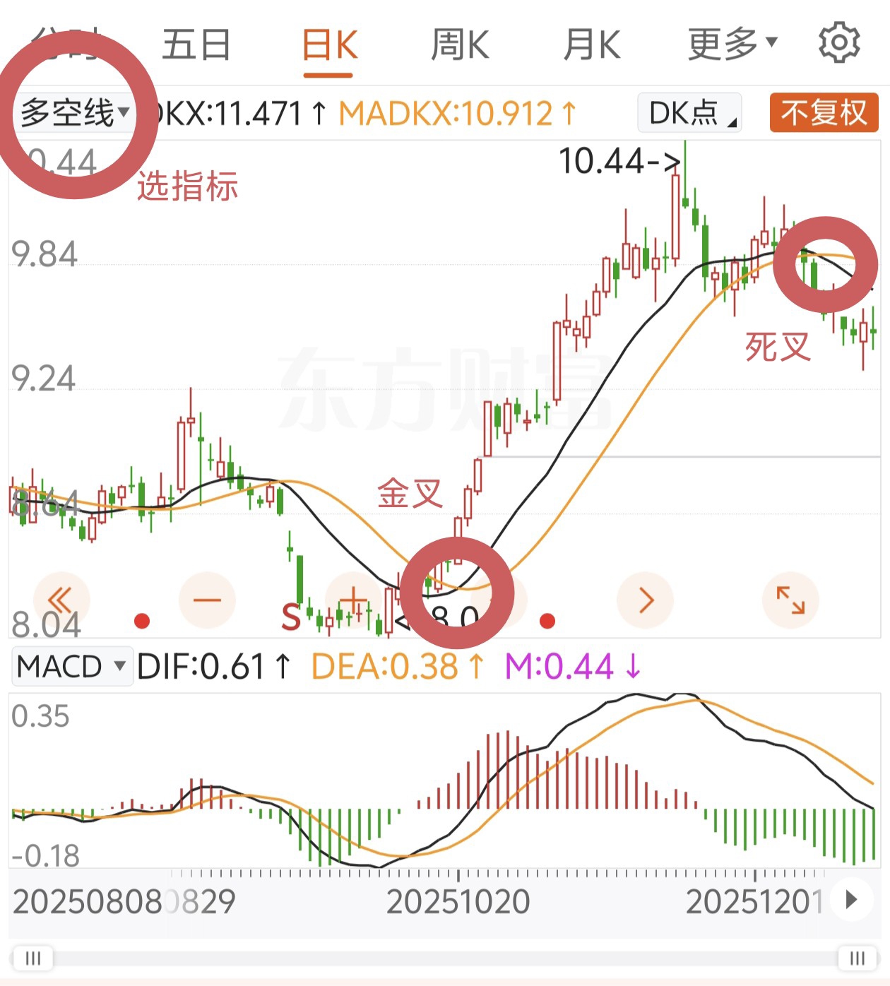 东方财富里的指标多空线怎么用?只要您会看,一分钟就能学会。