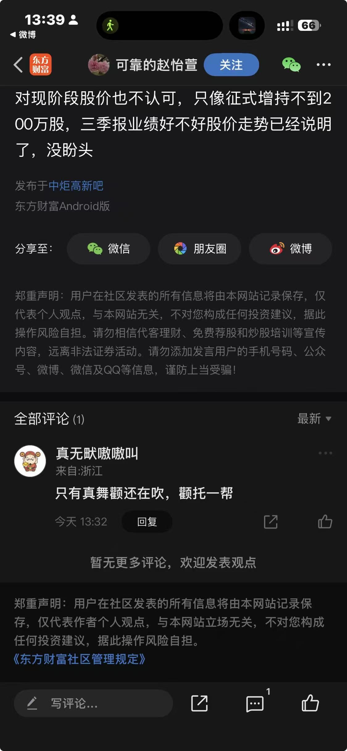 温馨提示: 1.根据《证券法》规定,禁止编造、传播虚假信息或者误导性信息,扰乱证券市场;2.用户在本社区发表的所有资料、言论等仅代表个人观点,与本网站立场无关,不对您构成任何投资建议。用户应基于自己的独立判断,自行决定证券投资并承担相应风险。《东方财富社区管理规定》