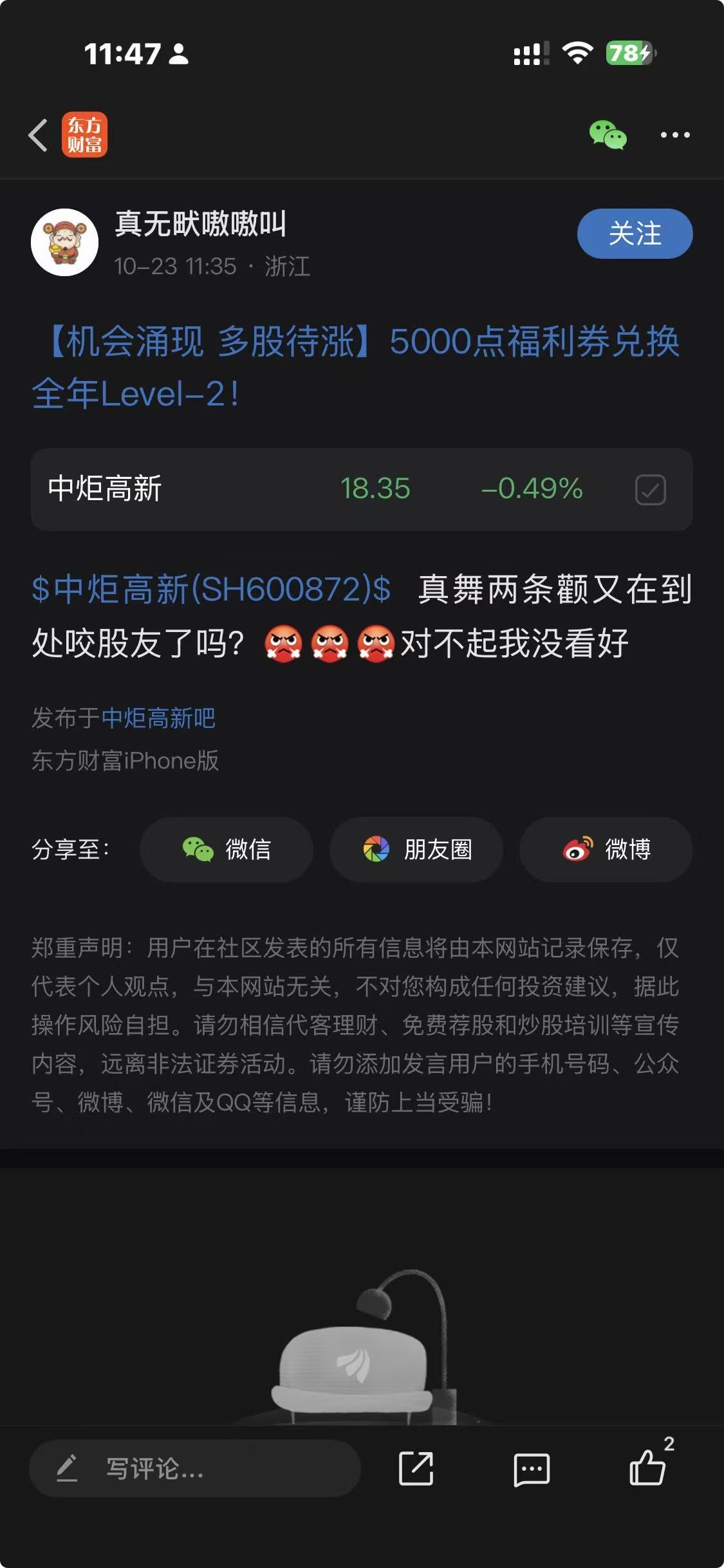 温馨提示: 1.根据《证券法》规定,禁止编造、传播虚假信息或者误导性信息,扰乱证券市场;2.用户在本社区发表的所有资料、言论等仅代表个人观点,与本网站立场无关,不对您构成任何投资建议。用户应基于自己的独立判断,自行决定证券投资并承担相应风险。《东方财富社区管理规定》