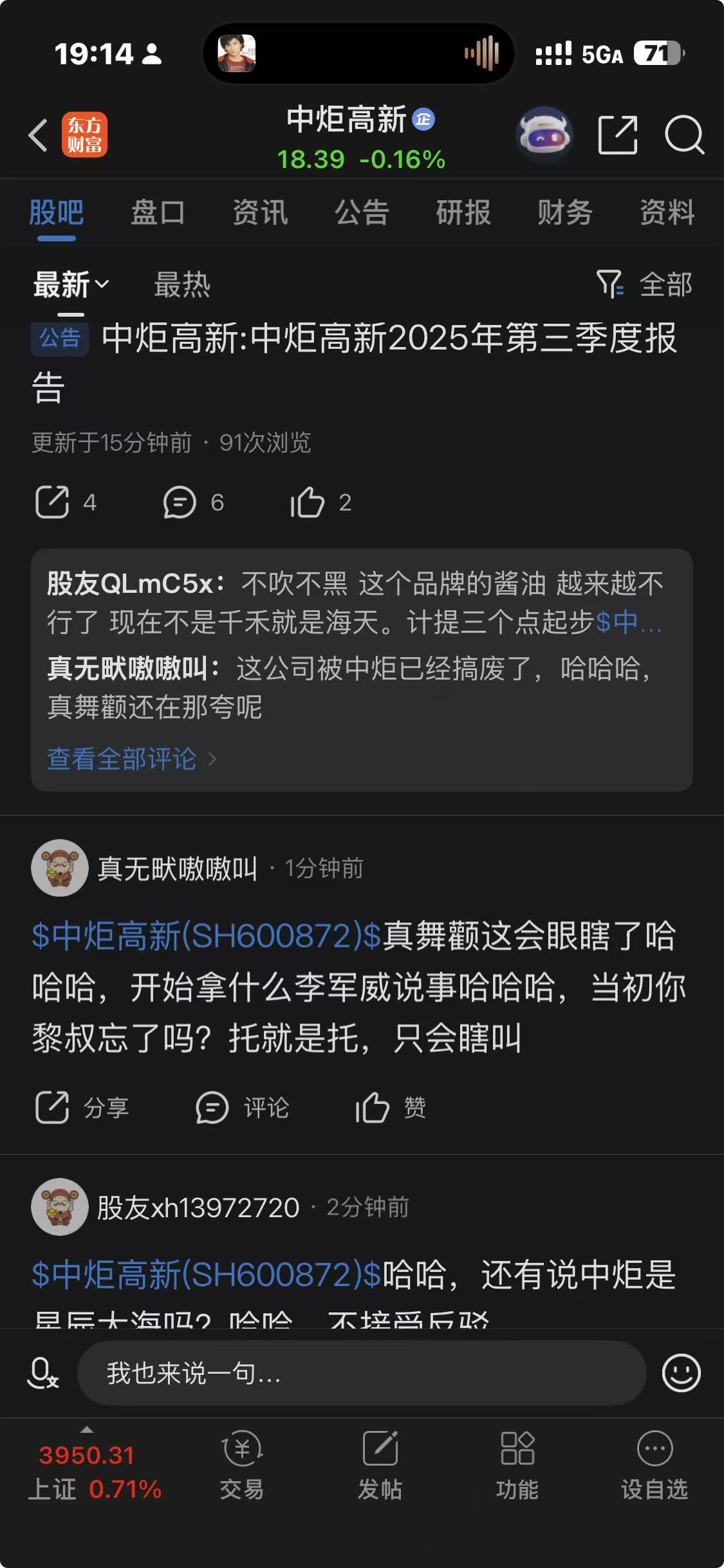 $中炬高新(SH600872)$ 嗷嗷叫,你这个人也是欲盖弥彰,不看好就走呗,天天在这里嗷嗷叫,不是典型的此地无银三百两嘛