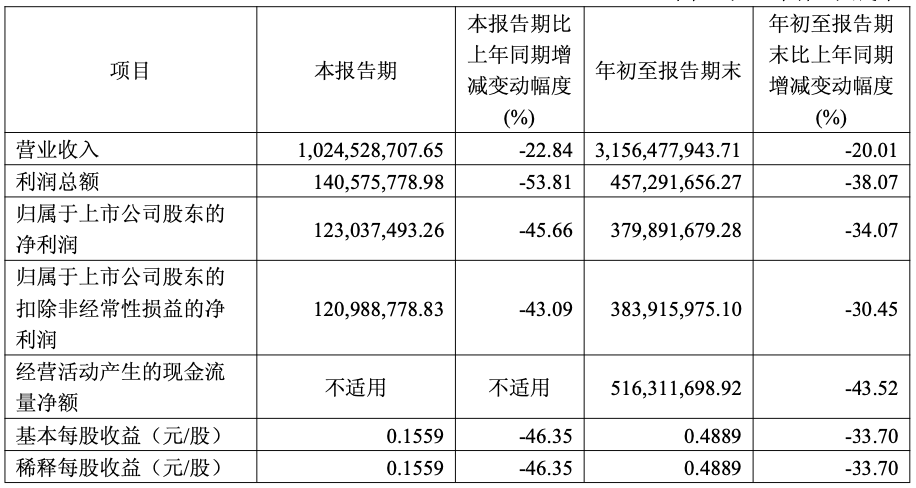 财报显示,公司2025年1-9月实现合并净利润3.80亿元,同比减少2.56亿元。归属母公司净利润3.80亿元,同比减少1.96亿元。其中: