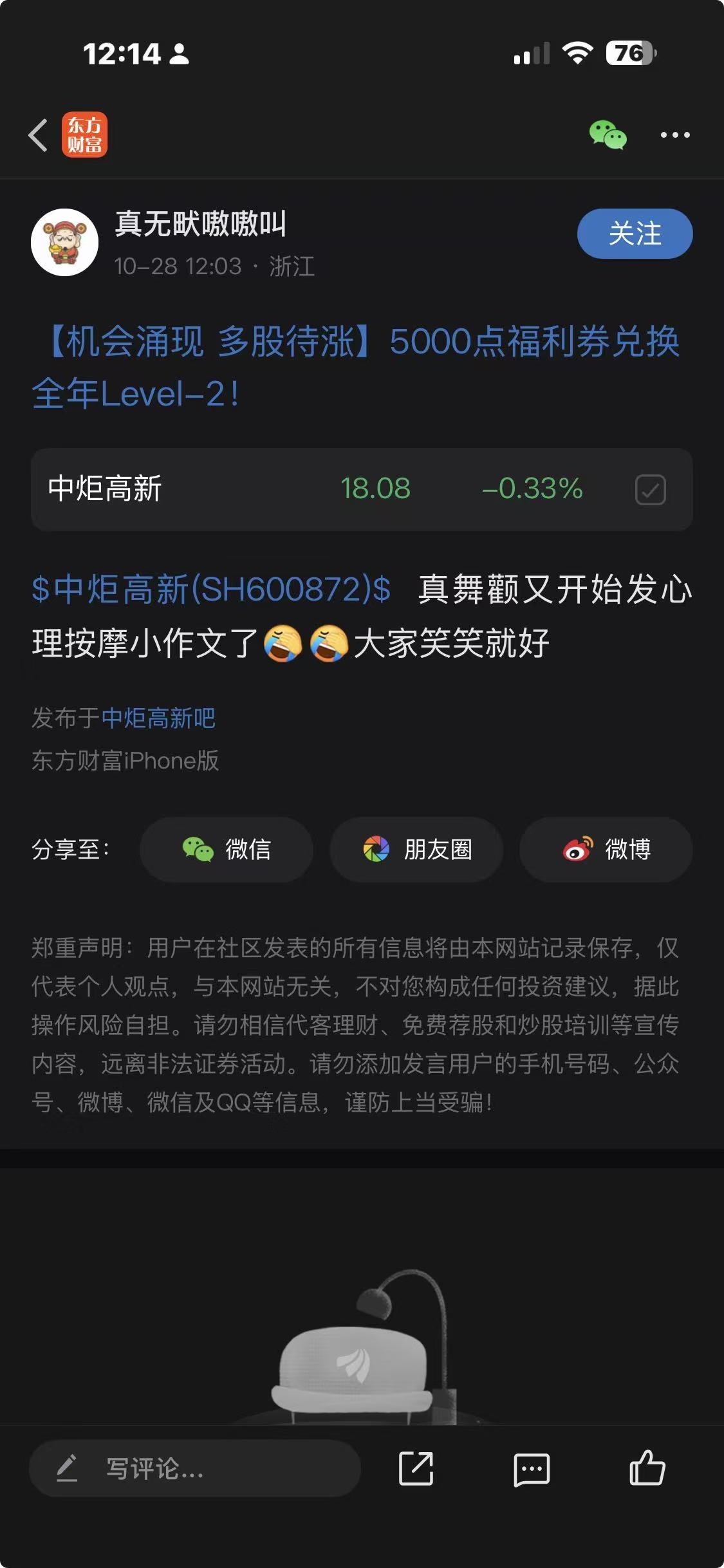 温馨提示: 1.根据《证券法》规定,禁止编造、传播虚假信息或者误导性信息,扰乱证券市场;2.用户在本社区发表的所有资料、言论等仅代表个人观点,与本网站立场无关,不对您构成任何投资建议。用户应基于自己的独立判断,自行决定证券投资并承担相应风险。《东方财富社区管理规定》