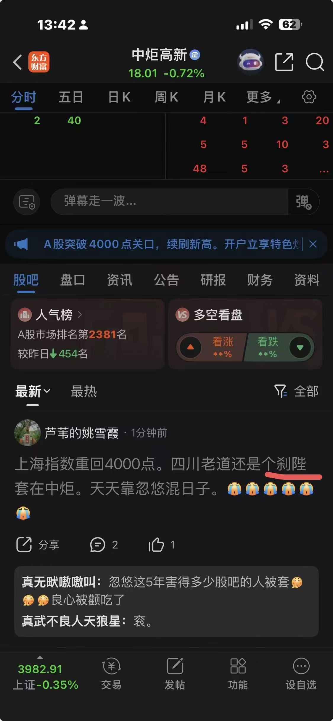 温馨提示: 1.根据《证券法》规定,禁止编造、传播虚假信息或者误导性信息,扰乱证券市场;2.用户在本社区发表的所有资料、言论等仅代表个人观点,与本网站立场无关,不对您构成任何投资建议。用户应基于自己的独立判断,自行决定证券投资并承担相应风险。《东方财富社区管理规定》