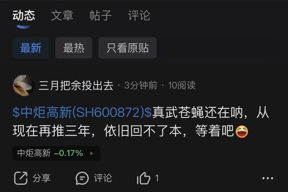 $中炬高新(SH600872)$ 3月本来是春暖花开,气候宜人的季节,但是你的素质和水平完全配不上这么美好的词,既然进入了股票市场,就要学会自己为自己负责,你亏了怨我们,有没有考虑过,是你自己本身就不成熟呢?空有一副成年人的皮囊,其实是一个超级大的巨婴?幼稚