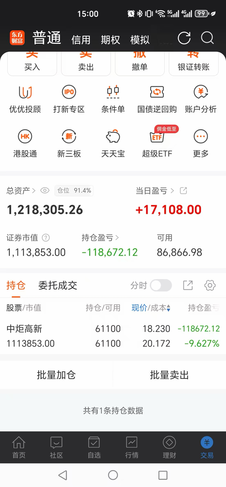 $中炬高新(SH600872)$ 丑八怪出来了!师叔今天回血17000大洋。其实论人品和担当。这个吧里就目前来看没有一个人比小道强!周末愉快闪。