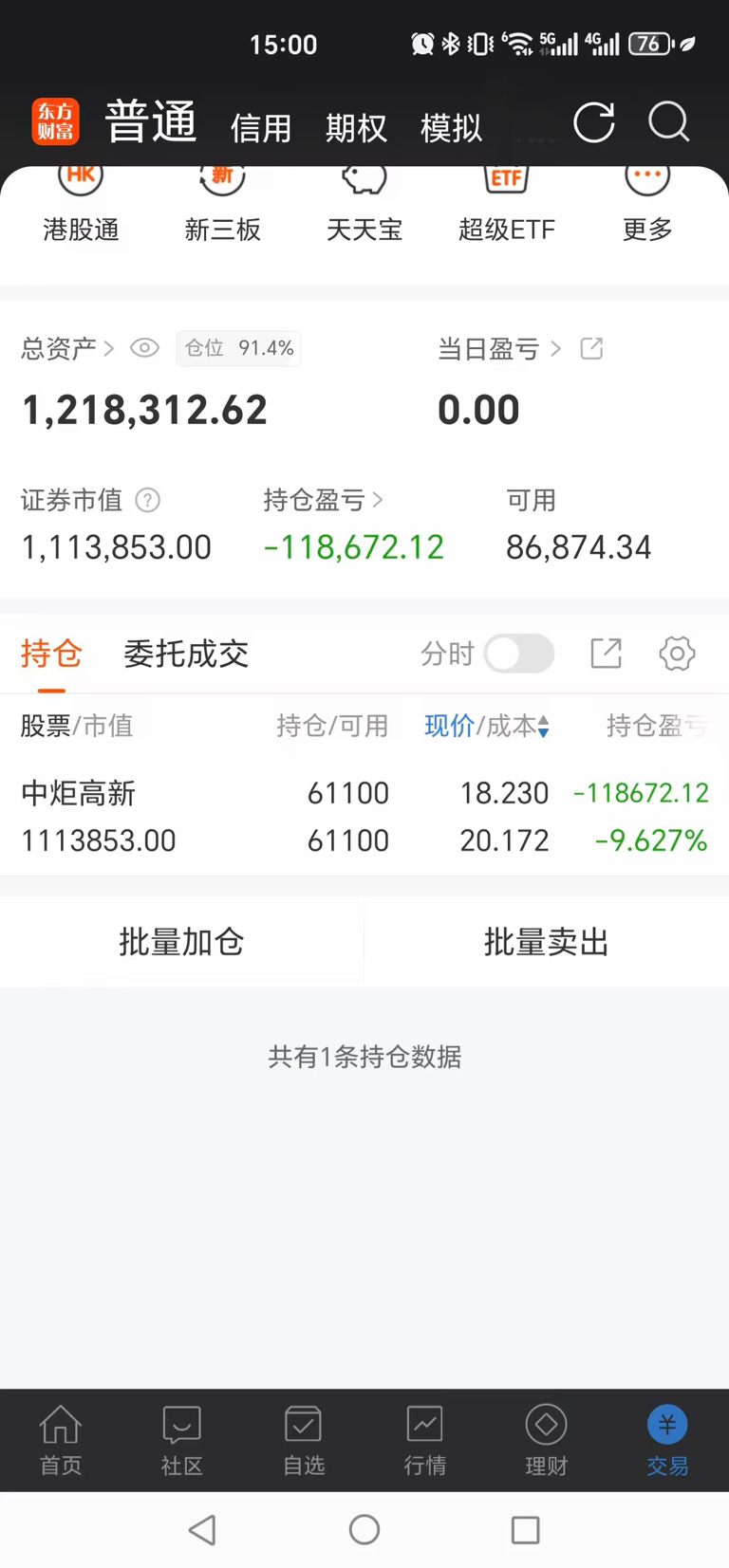 $中炬高新(SH600872)$  逗你玩。收平盘。惊不惊喜意不意外。我不绿。我平盘。师叔今天0波动