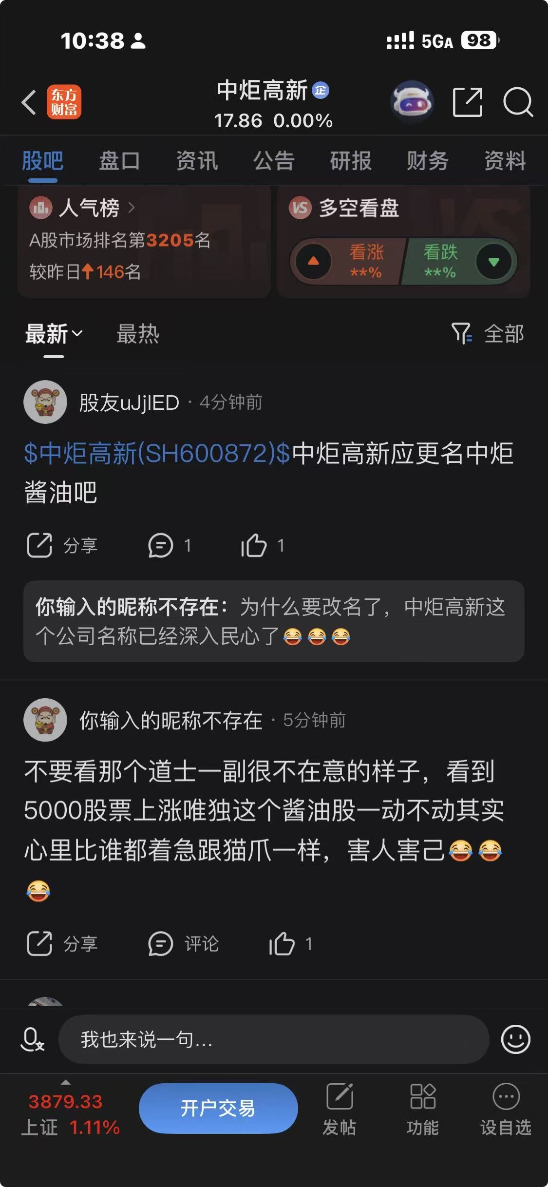 $中炬高新(SH600872)$ 有什么可急的呢?我希望能够再猛踩一脚,给我加仓的机会。已经到了17的位置,对于有准备的人来讲,肯定是机会。这才是逆势而行。心里着急的跟都是心态不稳的人,也注定成为韭菜的人。在这个位置还在搞心态,忽悠唱空的人,才是害人害己呢。尤其是以你们这种人为主。都什么人。活着浪费空气,洗了浪费土地,当个忽悠还浪费人民币。