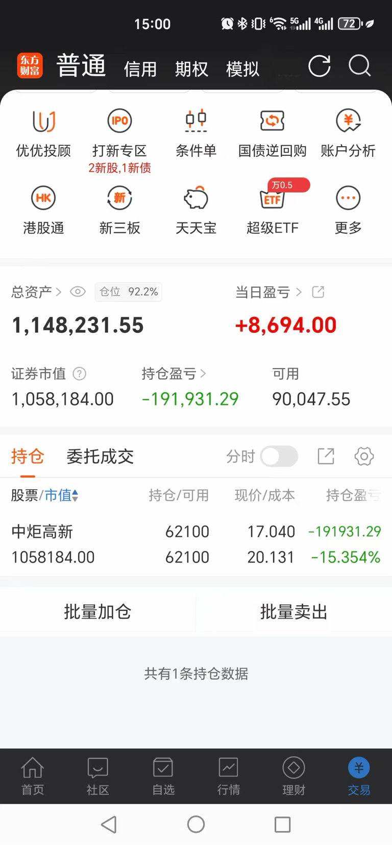 $中炬高新(SH600872)$ 师叔今天竟然回血了。因为预设价格没到。今天加仓不成功。主力没给机会。不知道还有没有机会加仓。。。。主力不会一溜烟跑飞奔去了吧。尾盘那1.5万手的成交量。。。跟演戏一样。