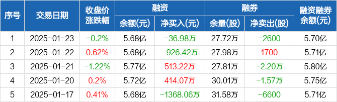 梅花生物:融资净偿还36.98万元,融资余额5.68亿元(01-23)