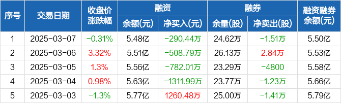 梅花生物:融资余额5.48亿元,创近一年新低(03-07)
