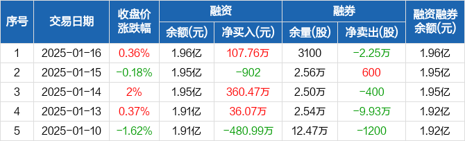 创业环保:融资净买入107.76万元,融资余额1.96亿元(01-16)