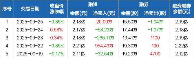 创业环保:融资净买入20.09万元,融资余额2.18亿元(09-25)