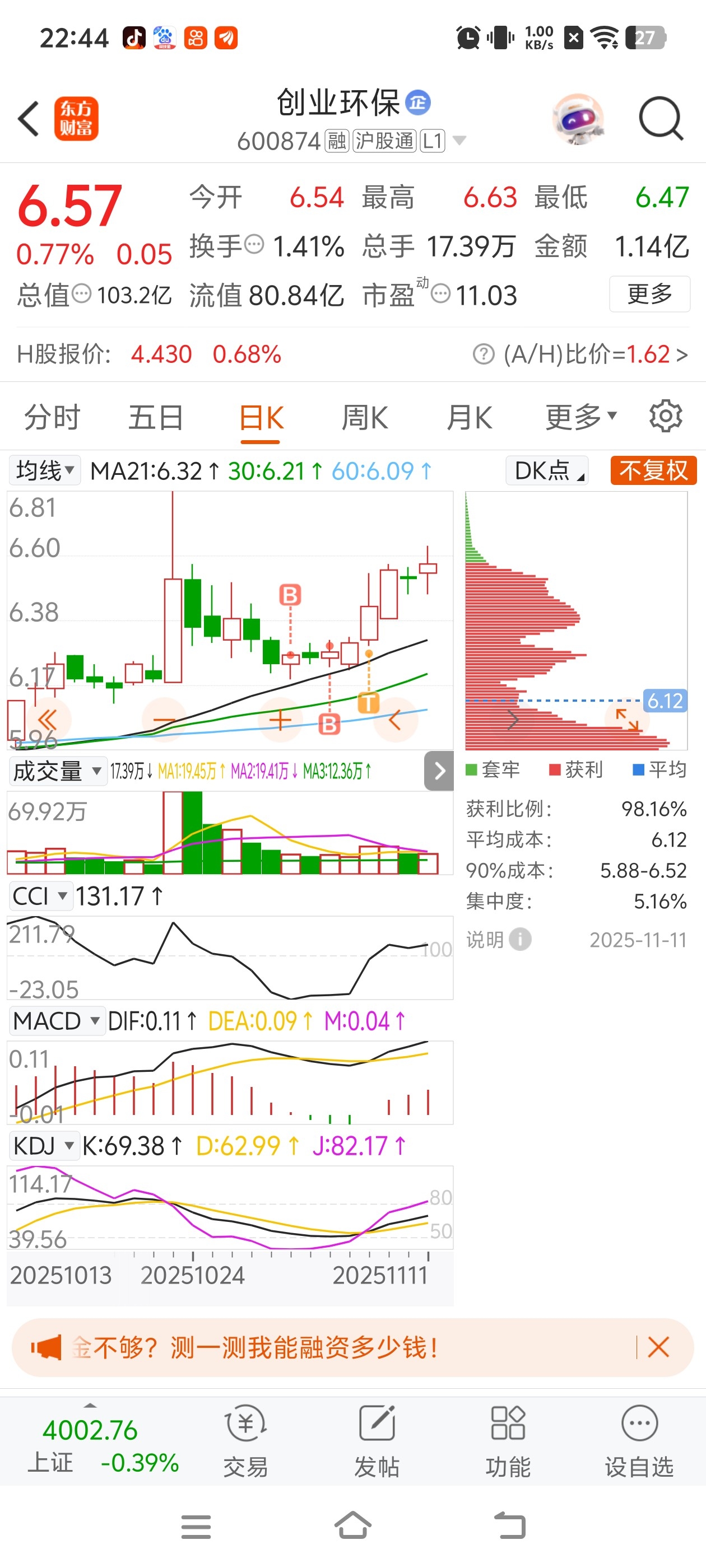 $创业环保(SH600874)$ 分歧转一致了,可以加仓了