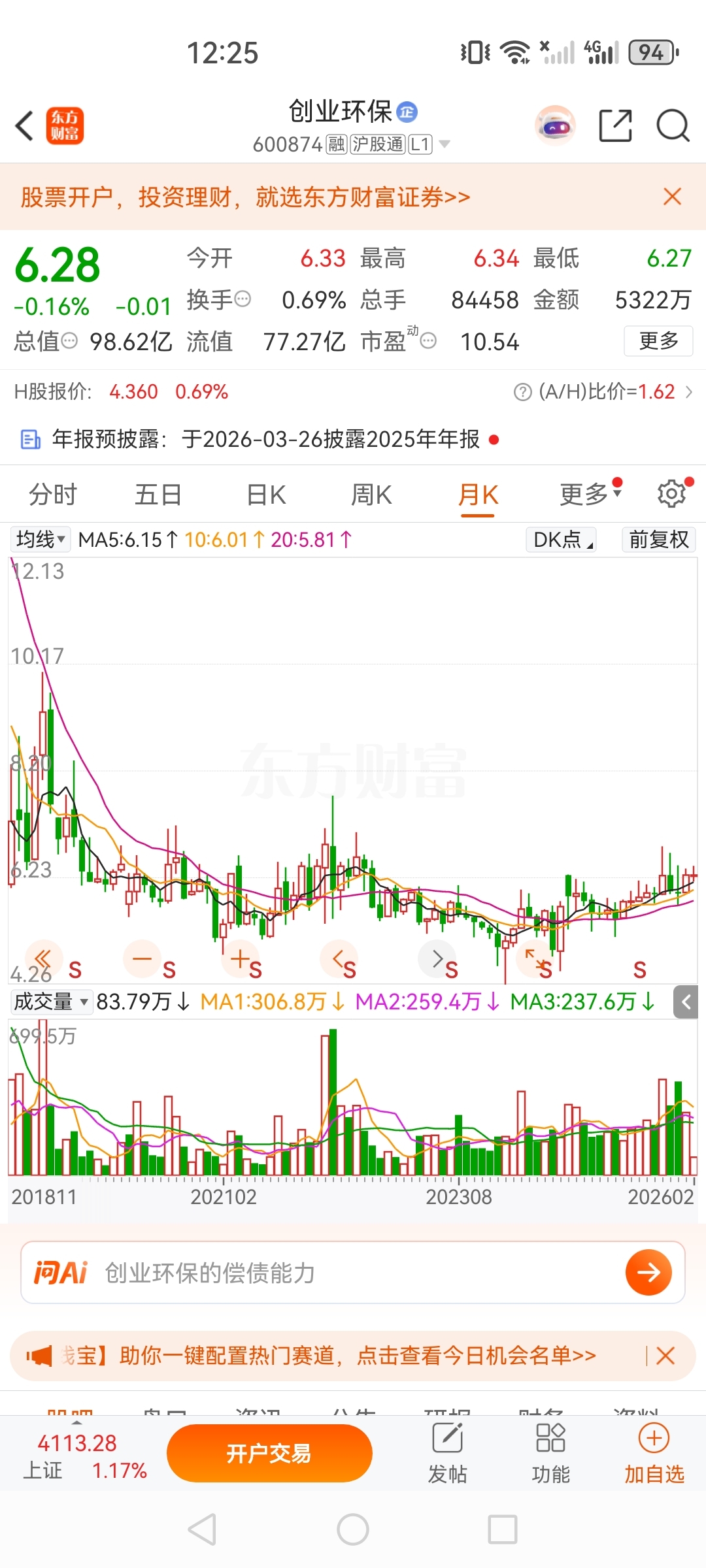 $创业环保(SH600874)$ 八年原地等待,好深情啊!