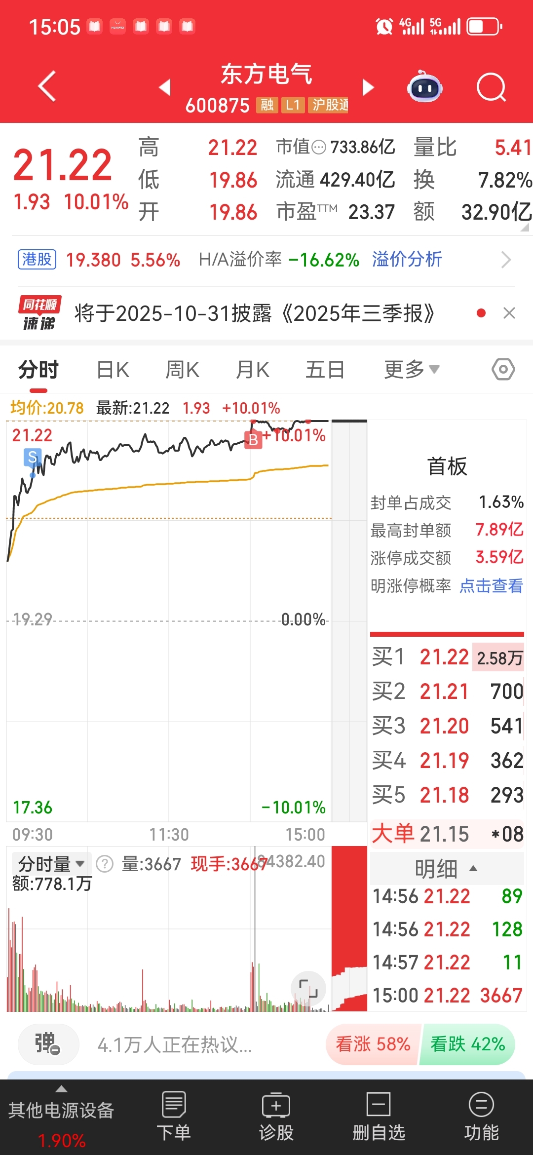 $东方电气(SH600875)$ 今天做了个反T,还好尾盘封住了