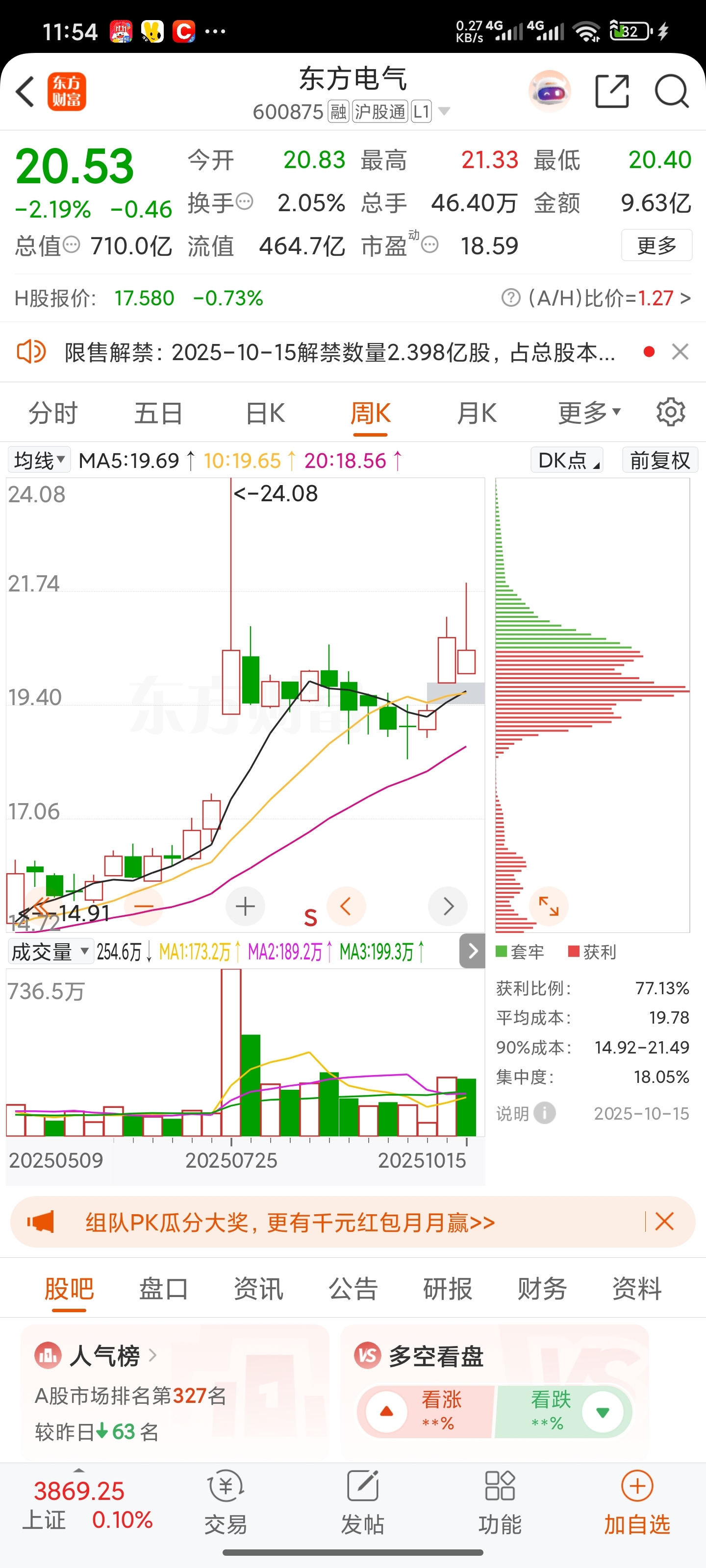 $东方电气(SH600875)$ 这个位置能横多久24这块骨头难啃啊