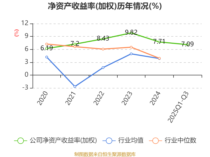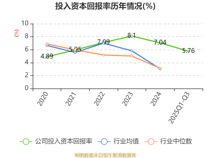 盈利能力方面, 2025年前三季度公司加权平均净资产收益率为7.09%,同比上升0.29个百分点。公司2025年前三季度投入资本回报率为5.76%,较上年同期下降0.09个百分点。