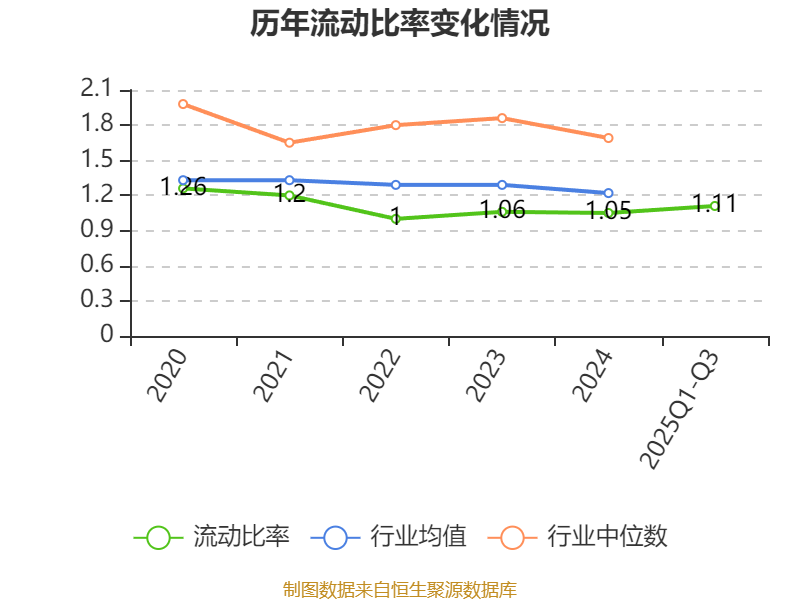 2025年前三季度,公司流动比率为1.11,速动比率为0.79。