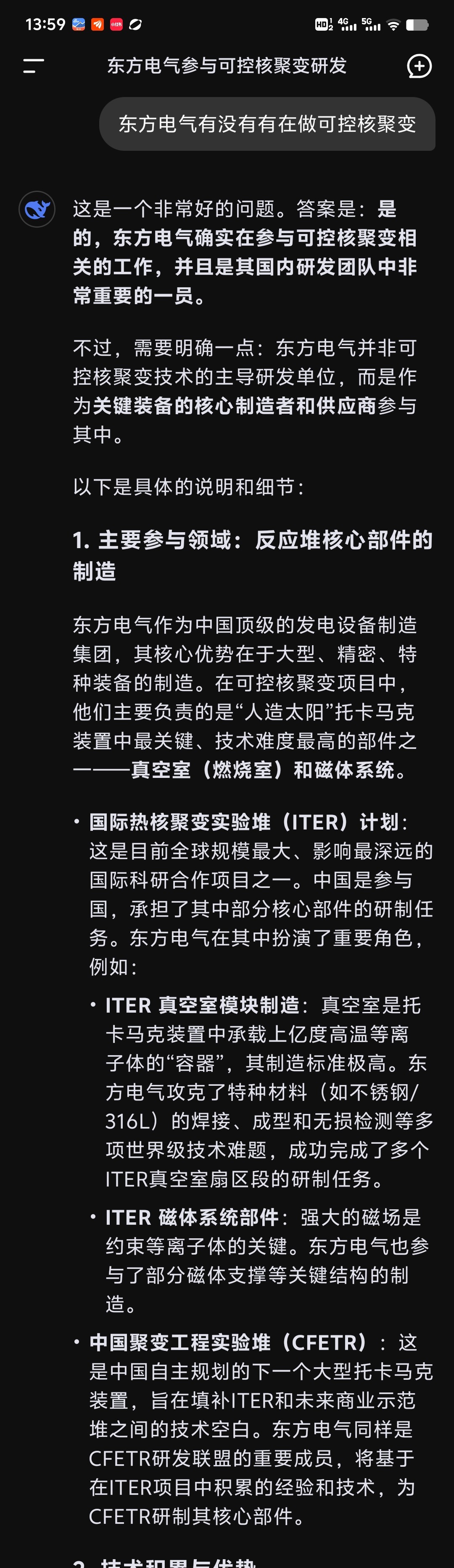 $东方电气(SH600875)$ 参加核聚变的起码来个涨停也才对得起大家
