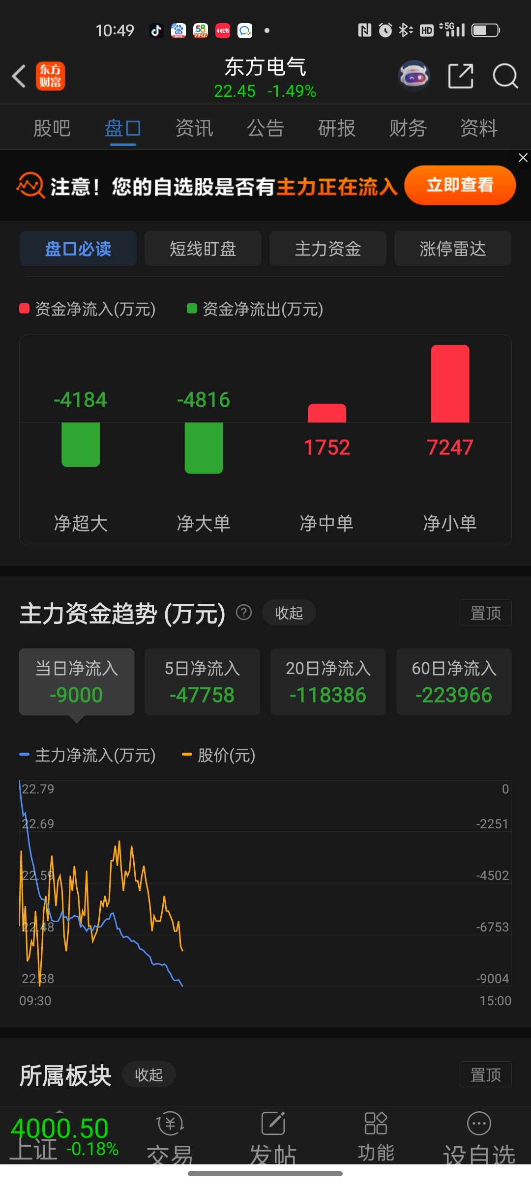 $东方电气(SH600875)$ 主力资金流出完毕跳水