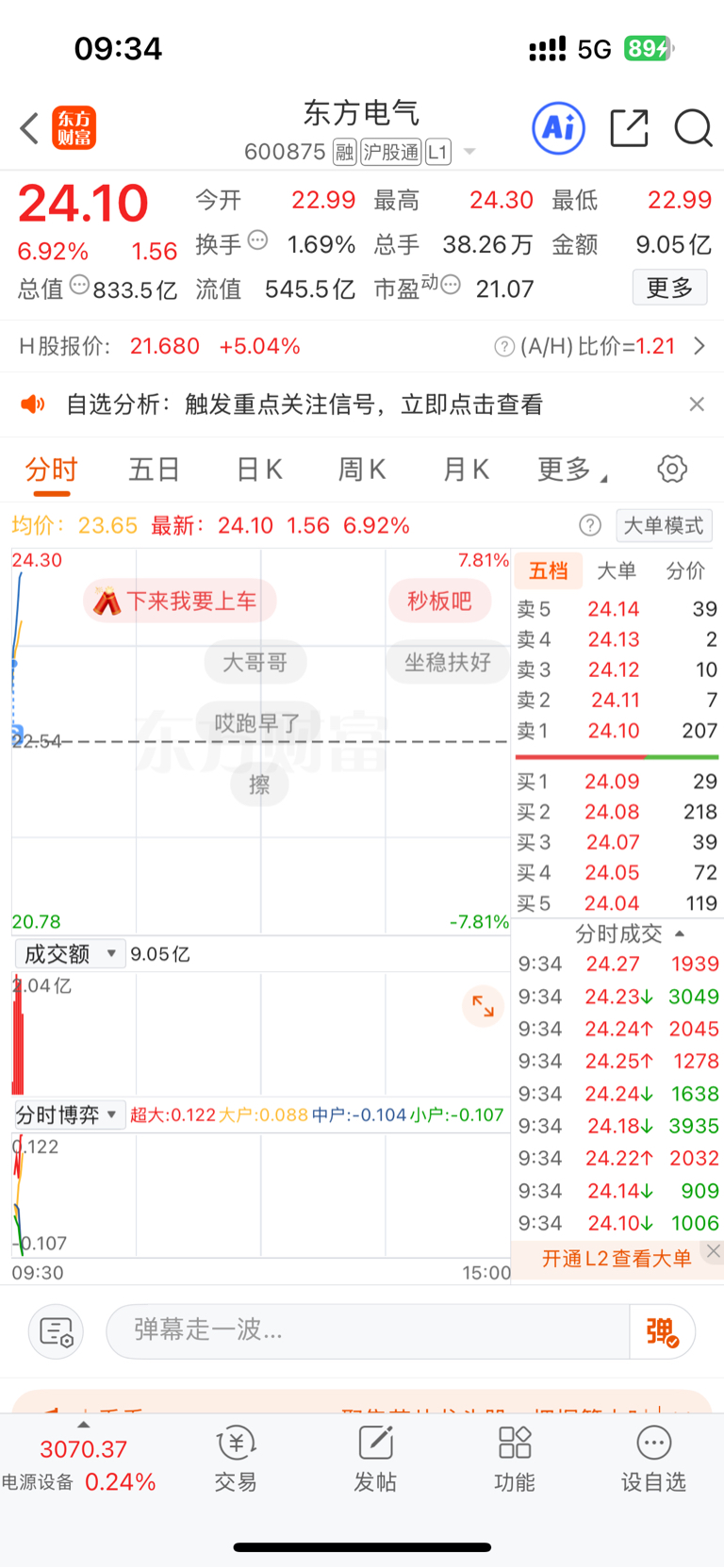 $东方电气(SH600875)$ 最近老干这种蠢事,一看到高开就慌