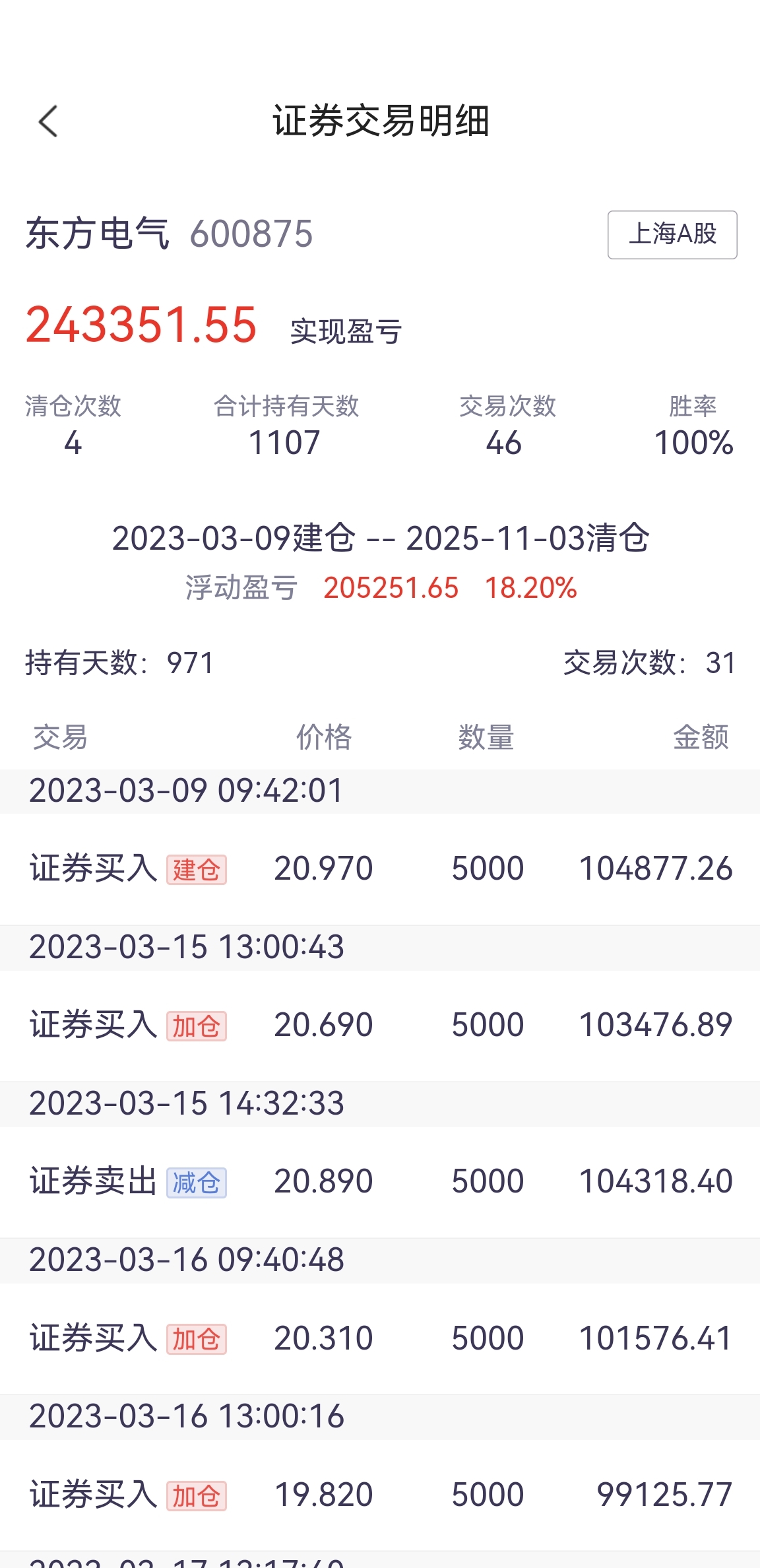 $东方电气(SH600875)$ 后悔者路过,拿了3年票,高抛低吸补补补,补到17.5成本,3涨停没走,跌跌撞撞陆陆续续21左右出完货
