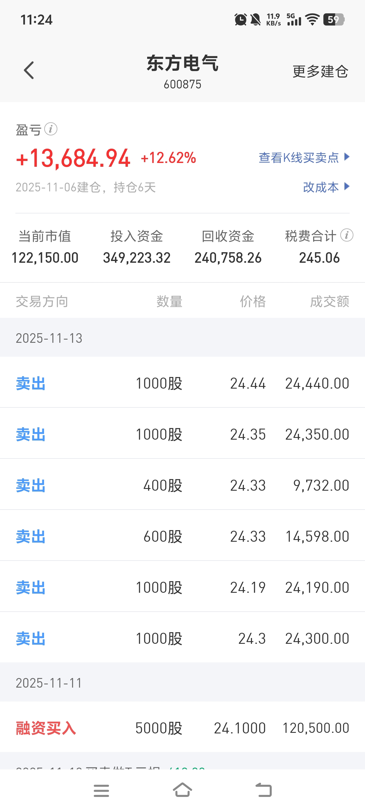 $东方电气(SH600875)$ 好了,底仓5千股不动了