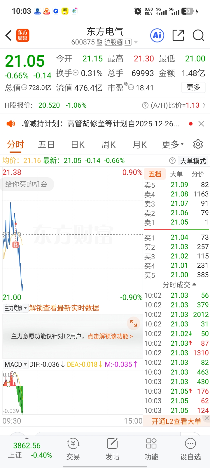 $东方电气(SH600875)$ 不好意思 我一万块给买崩了