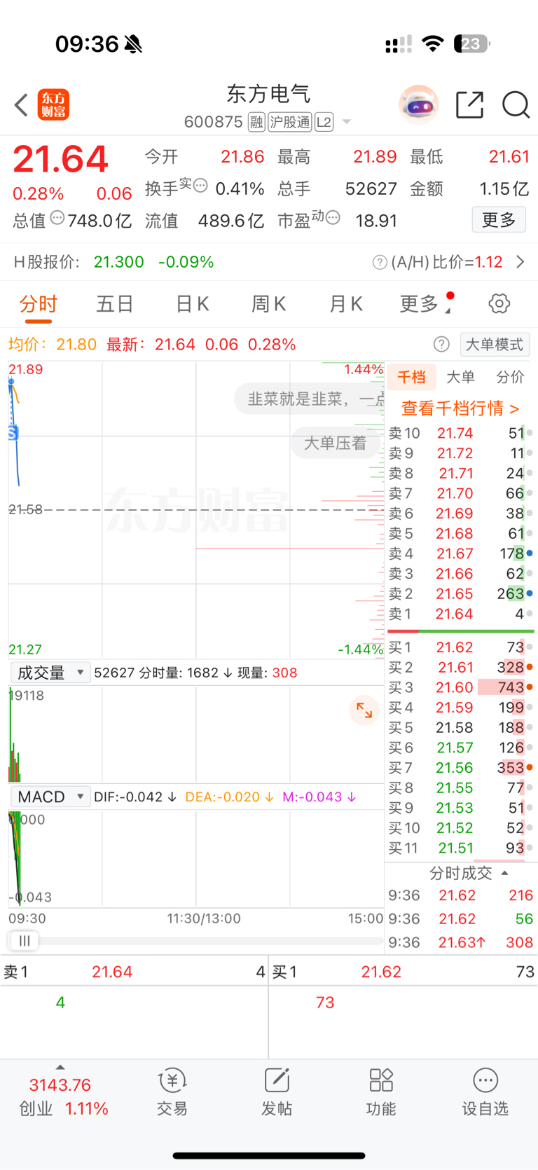 $东方电气(SH600875)$ 开盘就跑不墨迹