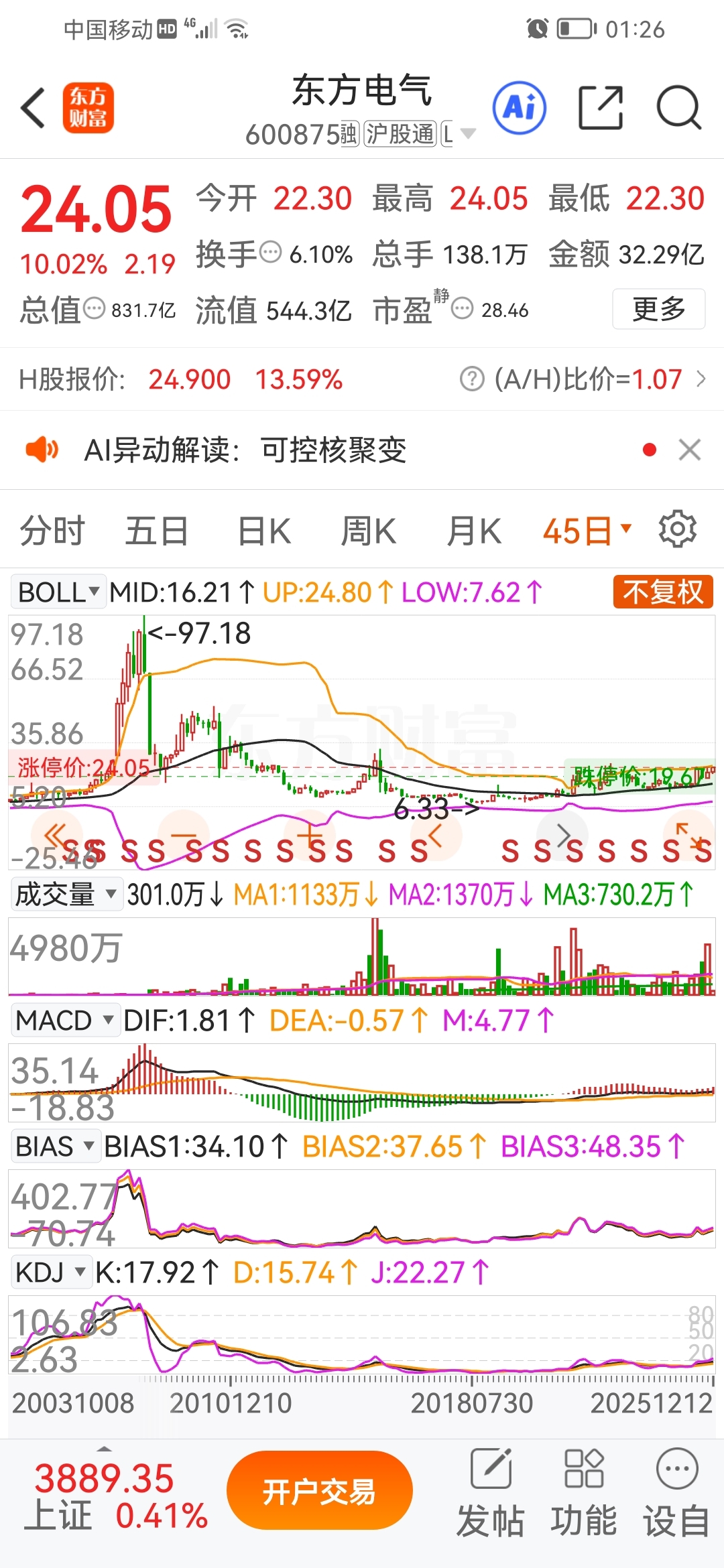 $东方电气(SH600875)$ #复盘记录# 形态良好,走势图强劲,中长线关注
