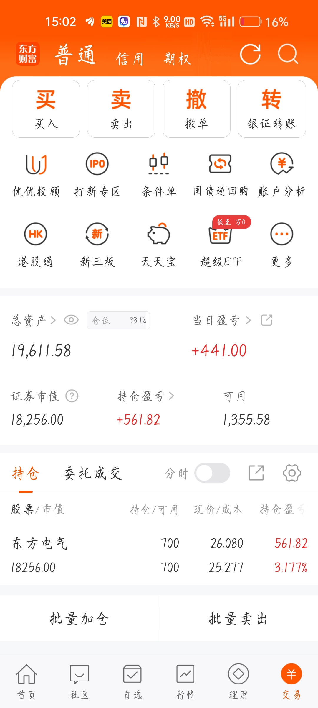 小散记录~第五天今日没有买进卖出,按照计划继续持有东方电气,早盘东方电气冲高,午