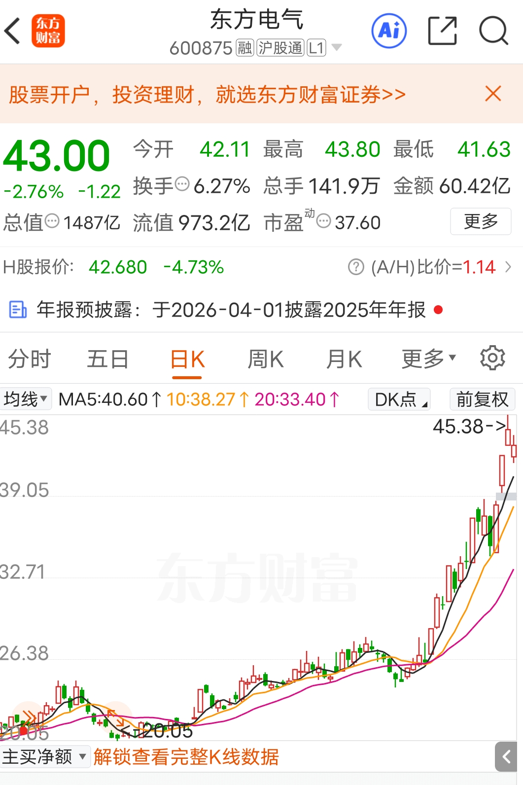 $东方电气(SH600875)$ 今天趁势回调,技术上就不会背离均线太高,靠近并站稳均线之上,相当健康的向上走势,上期持有,未来一周内可能会出订单消息。
