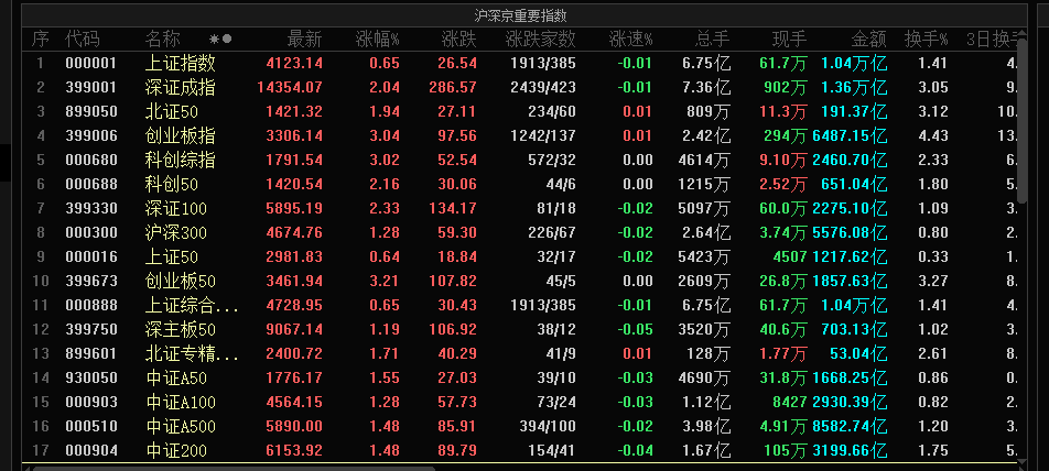 今天 A 股,成长赛道全面回暖,震荡整固不改中期向好,市场情绪明显修复,是典型的赛道回流、普涨修复行情。三大指数集体收涨,市场情绪回暖。截至收盘,上证指数报4123.14点,涨0.65%;深证成指报14354.07点,涨2.04%;创业板指报3306.14点,大涨3.04%。两市超4500只个股上涨,成交额维持活跃,资金聚焦半导体、电力设备、AI硬件等主线,周期板块小幅调整,整体呈良性轮动。