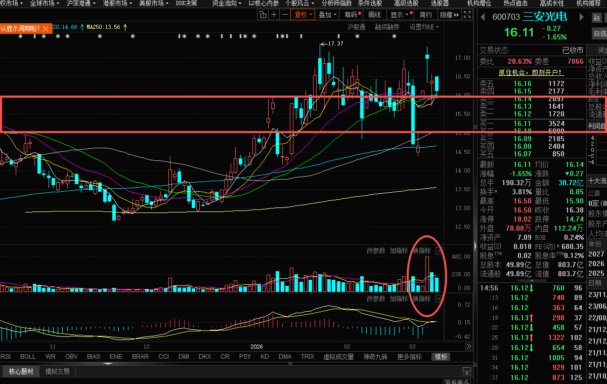 600703 三安光电:AI 算力光芯片 + Mini/Micro LED + 化合物半导体龙头股,回调即是低吸:高速 Micro LED 光源器件送样国际客户,算力光模块产业链受益。碳化硅产业爆发,基本面持续改善,机构关注度高。