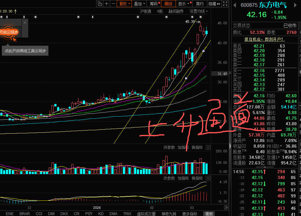 从技术层面看:中期主升浪明确,股价站稳中期均线,41.50-42.00元为强支撑区,回调属强势洗盘,未现趋势反转信号。建议继续持有,支撑位41.50元,压力位45.00元;守住支撑则震荡后有望再创新高,中线看趋势延续。