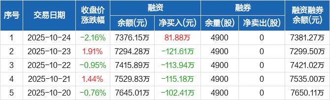 凯盛新能:融资净买入81.88万元,融资余额7376.15万元(10-24)