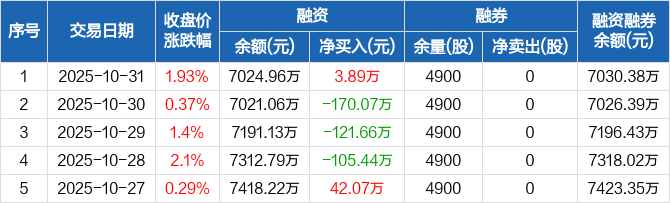 凯盛新能:融资净买入3.89万元,融资余额7024.96万元(10-31)
