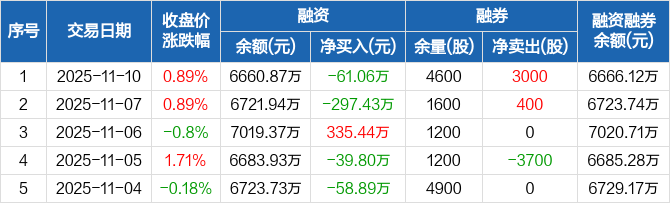 凯盛新能:融资余额6660.87万元,创近一年新低(11-10)