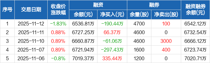 凯盛新能:融资余额6536.81万元,创近一年新低(11-12)